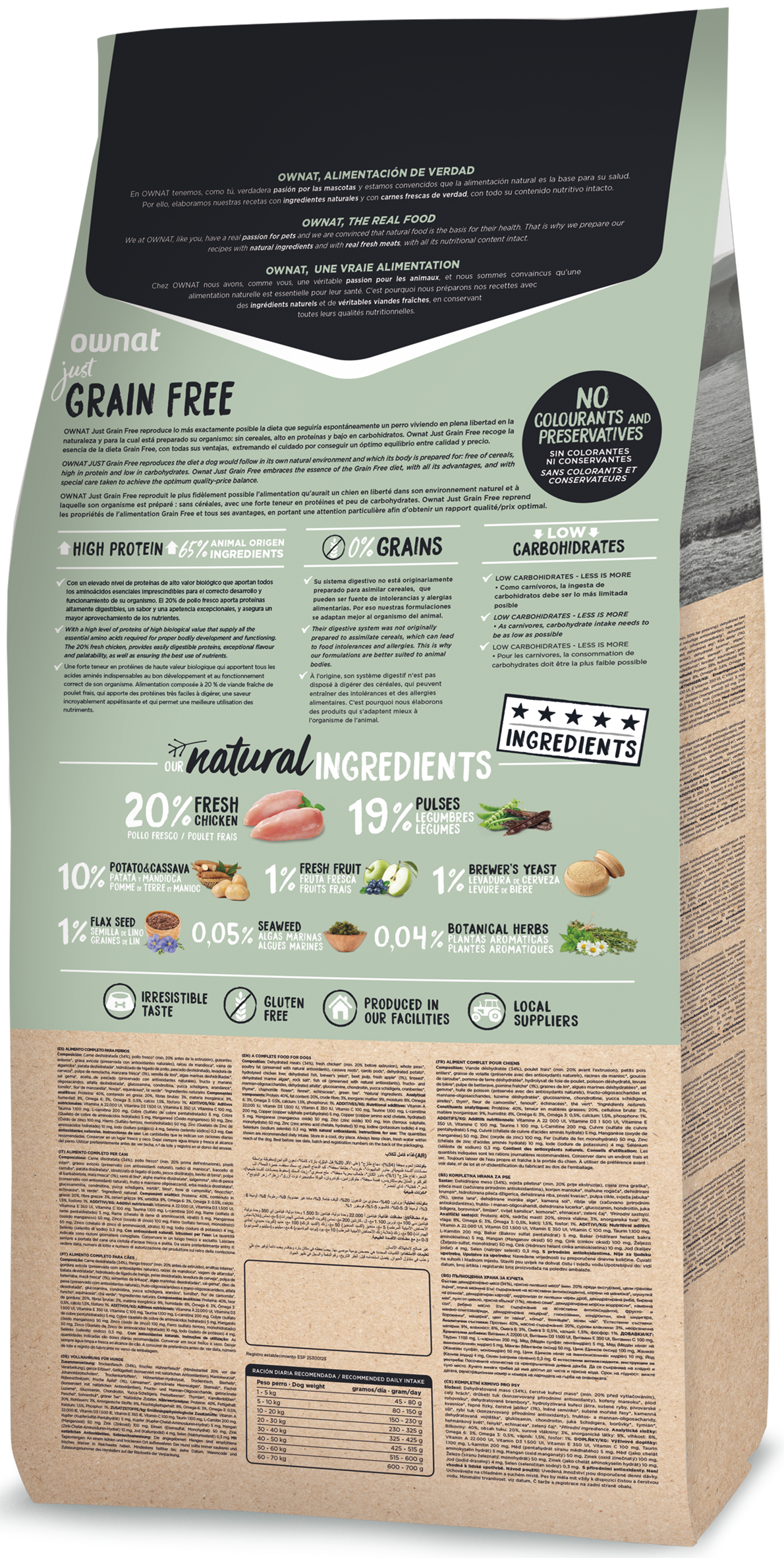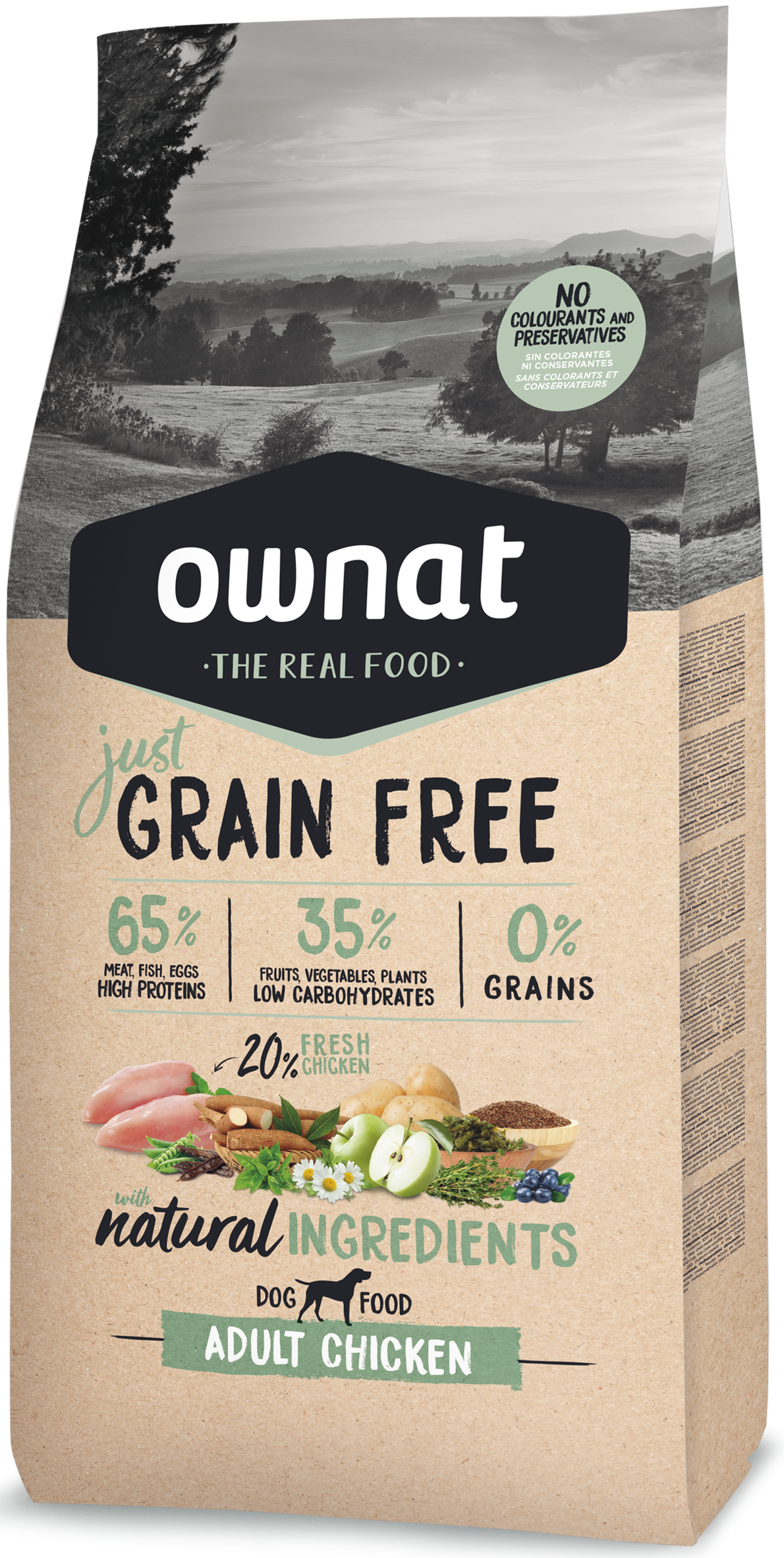 Ownat Just Grain Free Chicken Dog to karma bezzbożowa, wysokobiałkowa, niskowęglowodanowa. Kompletna karma wskazana dla dorosłych psów wszystkich ras. Dzięki 20% świeżego kurczaka, oferuje wysokiej jakości białko i doskonały smak.
