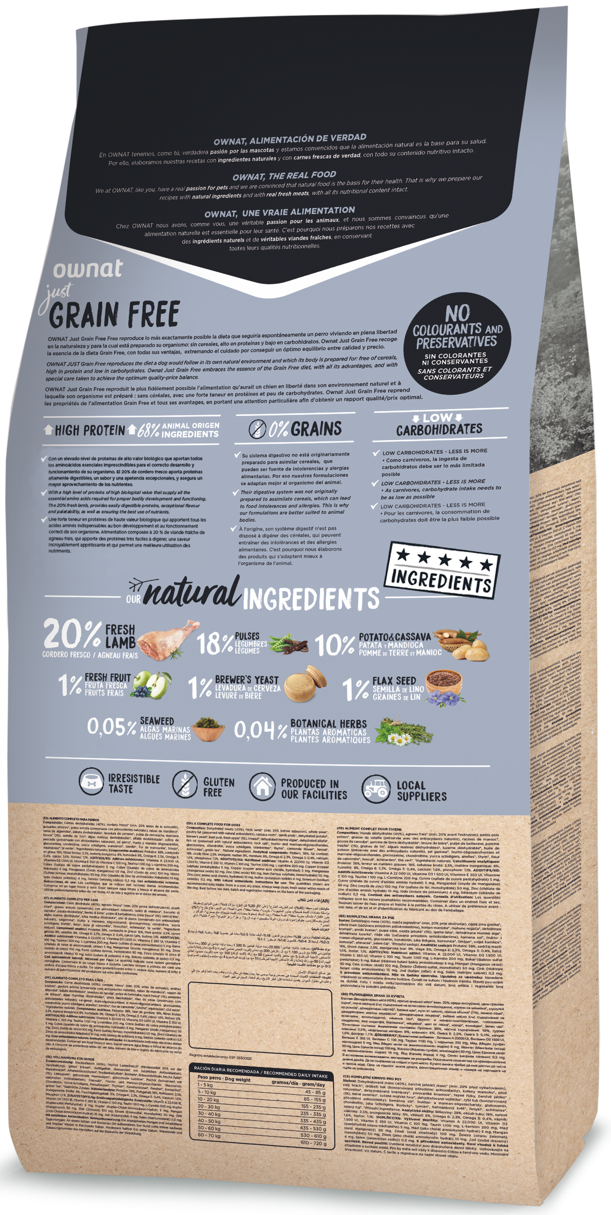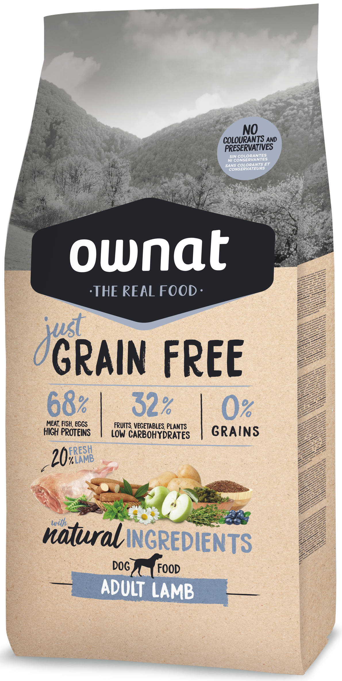 Ownat Just Grain Free Lamb Dog to karma bezzbożowa, wysokobiałkowa, niskowęglowodanowa. Kompletna karma wskazana dla psów wszystkich ras o normalnej aktywności. Dzięki 20% świeżej jagnięciny jest szczególnie odpowiednia dla zwierząt z nadwrażliwością i nietolerancją pokarmową