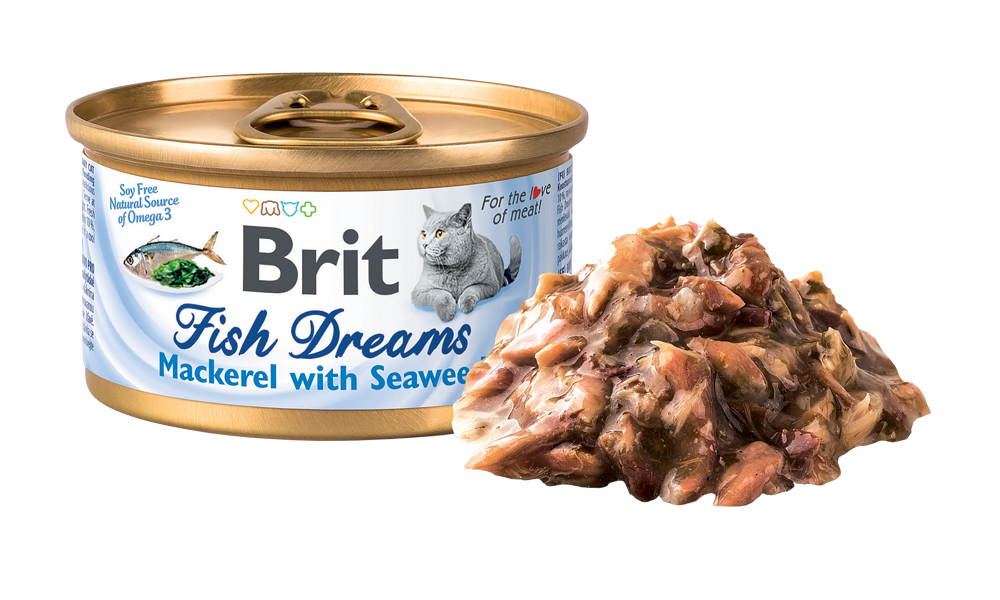 Karma uzupełniająca dla dorosłych kotów. Brit Fish Dreams to zbilansowane posiłki dla kotów. Zawiera smakowitą makrelę z wodorostami w sosie. Wspiera witalność, zdrowie i urodę.