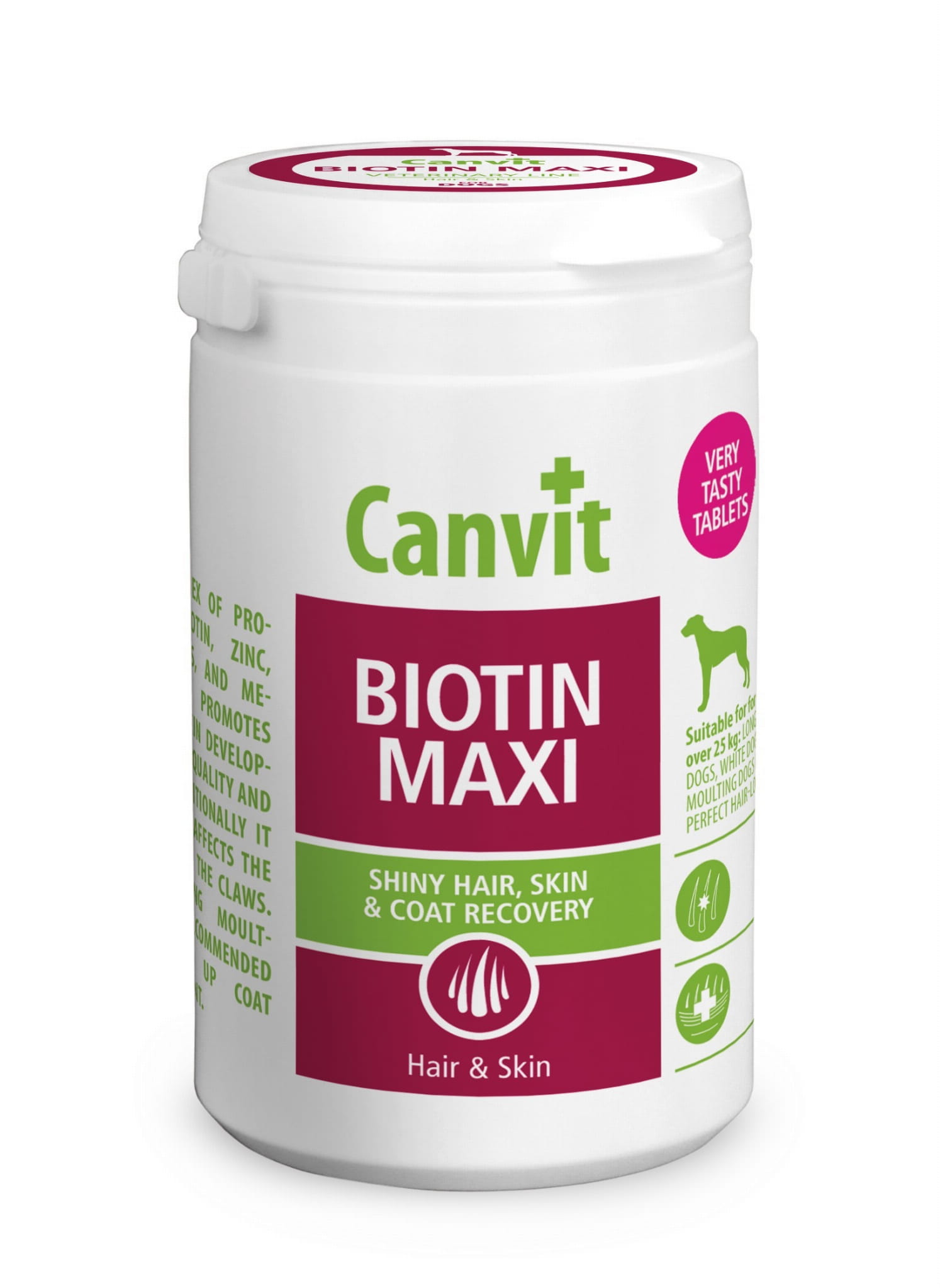 Kompleks aktywnej biotyny, cynku, witamin z grupy B i metioniny wspomaga zdrowie skóry, jakość okrywy włosowej i połysk sierści. Dodatkowo ma pozytywny wpływ na keratynę obecną w pazurach. Stosowanie podczas linienia przyspiesza wymianę okrywy włosowej.