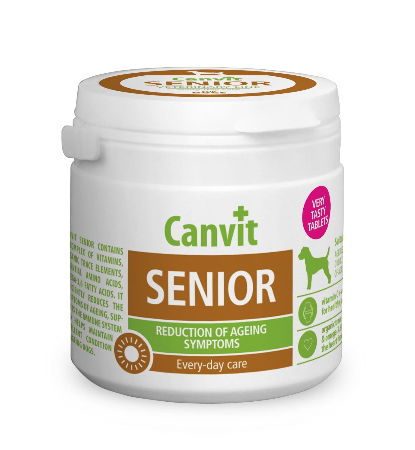 Canvit Senior zawiera kompleks witamin, mikro i makroelementów, niezbędnych aminokwasów oraz kwasów tłuszczowych omega 3 i 6. Znacząco obniża objawy starzenia, wspiera układ immunologiczny oraz pomaga utrzymać doskonałą kondycję starszych psów.