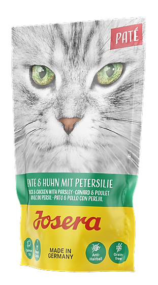 Linia mokrych karm JOSERA Paté to szeroki asortyment smacznych pasztetów, które urozmaicą dietę Twojego kota. Optymalnie zbilansowane karmy zawierają wysokiej jakości mięso i podroby oraz wszystkie składniki odżywcze niezbędne do zapewnienia Twojemu pupilowi zdrowia i prawidłowego funkcjonowania.