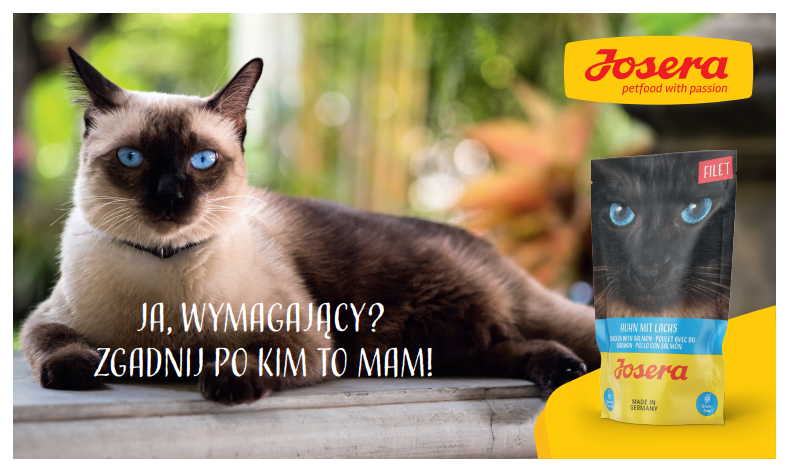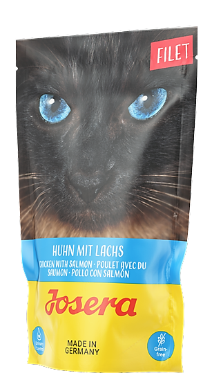 Mokre karmy JOSERA Filet to soczyste mięsne i rybne kawałki, zatopione w pysznym bulionie. Receptury bogate w cenne witaminy i minerały, z dużą zawartością dobrej jakości mięsa i smakowitych podrobów przypadną do gustu nawet najbardziej wybrednym kocim smakoszom.