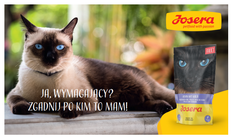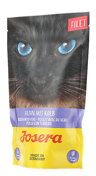 Mokre karmy JOSERA Filet to soczyste mięsne i rybne kawałki, zatopione w pysznym bulionie. Receptury bogate w cenne witaminy i minerały, z dużą zawartością dobrej jakości mięsa i smakowitych podrobów przypadną do gustu nawet najbardziej wybrednym kocim smakoszom.