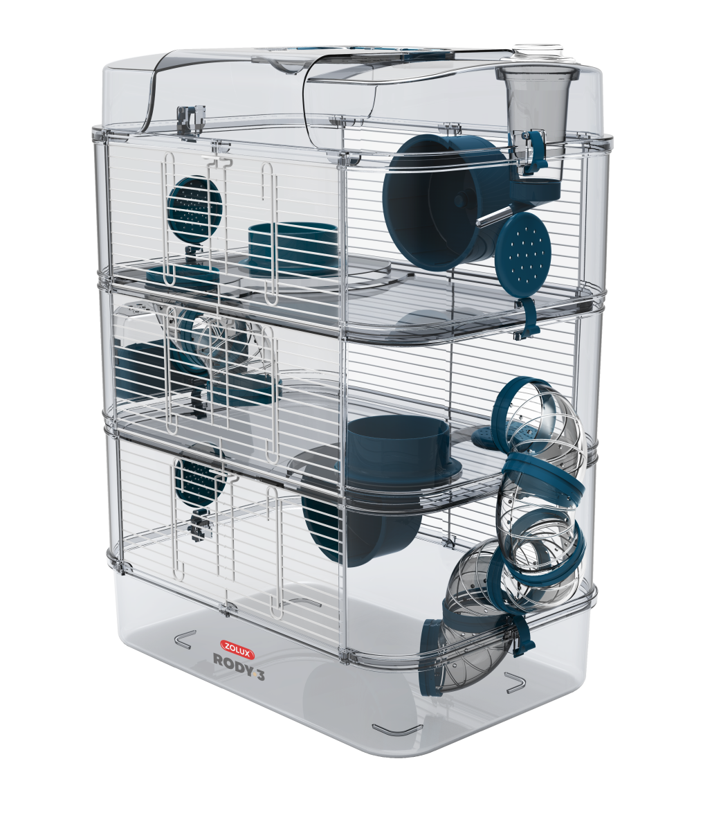 Piętrowa modna klatka zajmuje niewiele miejsca, poręczny uchwyt ułatwia przenoszenie. Metalowy drzwiczki na każdym poziomie oraz otwieranie na górze pozwala z łatwością złapać zwierzątko. Prosty system bocznych zaczepów pozwala szybko rozłożyć klatkę do czyszczenia. Klatka przeznaczona dla chomików, myszoskoczków i myszy.