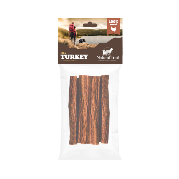 Forma pasków ułatwia podawanie przysmaków jako nagrody podczas treningu lub jako pyszną przekąskę między posiłkami. Indyk to alternatywne źródło mięsa, które może dostarczyć odmiennej gamy smaków, co sprawia, że przysmaki Natural Trail są atrakcyjne nawet dla wybrednych psów.