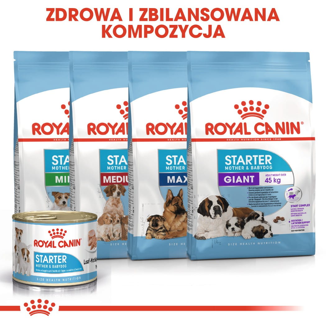 Karma ROYAL CANIN® Starter Mother & Babydog pokrywa potrzeby suk w ciąży i okresie laktacji, ras małych (do 10 kg) oraz szczeniąt ras małych, w okresie odsadzenia, do 2 miesiąca życia.