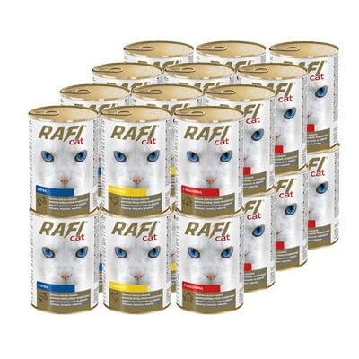 Karmy Rafi Cat to pełnoporcjowe karmy dla dorosłych kotów, które posiadają odpowiednio skomponowany skład spełniający ich wszystkie specyficzne wymagania żywieniowe. Najważniejszymi ich walorami są podstawowe surowce: mięso i produkty pochodzenia zwierzęcego oraz ryby i produkty rybne, które są źródłem wysokiej jakości białka. Karmy są produktami o optymalnej zawartości tłuszczu będącego źródłem naturalnie występującego w mięsie i produktach pochodzenia zwierzęcego kwasu arachidonowego – niezbędnego do prawidłowego funkcjonowania organizmu kotów. Dodatkowo surowce mięsne są naturalnymi źródłami kwasów z rodziny n-6, a dodatek do karm tauryny pokrywa fizjologiczną normę, dzięki czemu proces trawienia tłuszczu i białek zachodzi w sposób prawidłowy. Odpowiedni stosunek wapnia do fosforu przyczynia się do utrzymania prawidłowej homeostazy tych pierwiastków w organizmie i zachowania mineralizacji kości na stałym poziomie.