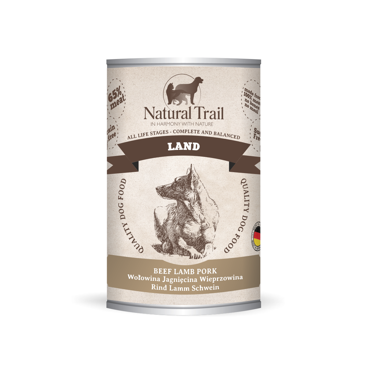 Natural Trail to doskonale zbilansowana, kompletna i smakowita karma mokra dla psów. Natural Trail to karmy wyprodukowane z naturalnym zapotrzebowaniem. Wszystkie receptury zostały wyprodukowane w 100% ze świeżego mięsa w Niemieckiej fabryce, dla której wysoka jakość produktów oraz zdrowie naszych zwierząt to podstawa. Natural Trail to doskonała propozycja gwarantująca prawidłowe funkcjonowanie naszych pupili.