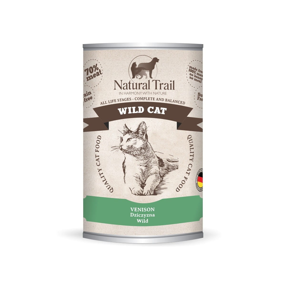 Natural Trail Wild Cat - 70% (dziczyzna) - kompletna i zbilansowana karma dla kotów super premium. Wykonana w 100% z mięsa. Bez mączki i kości.