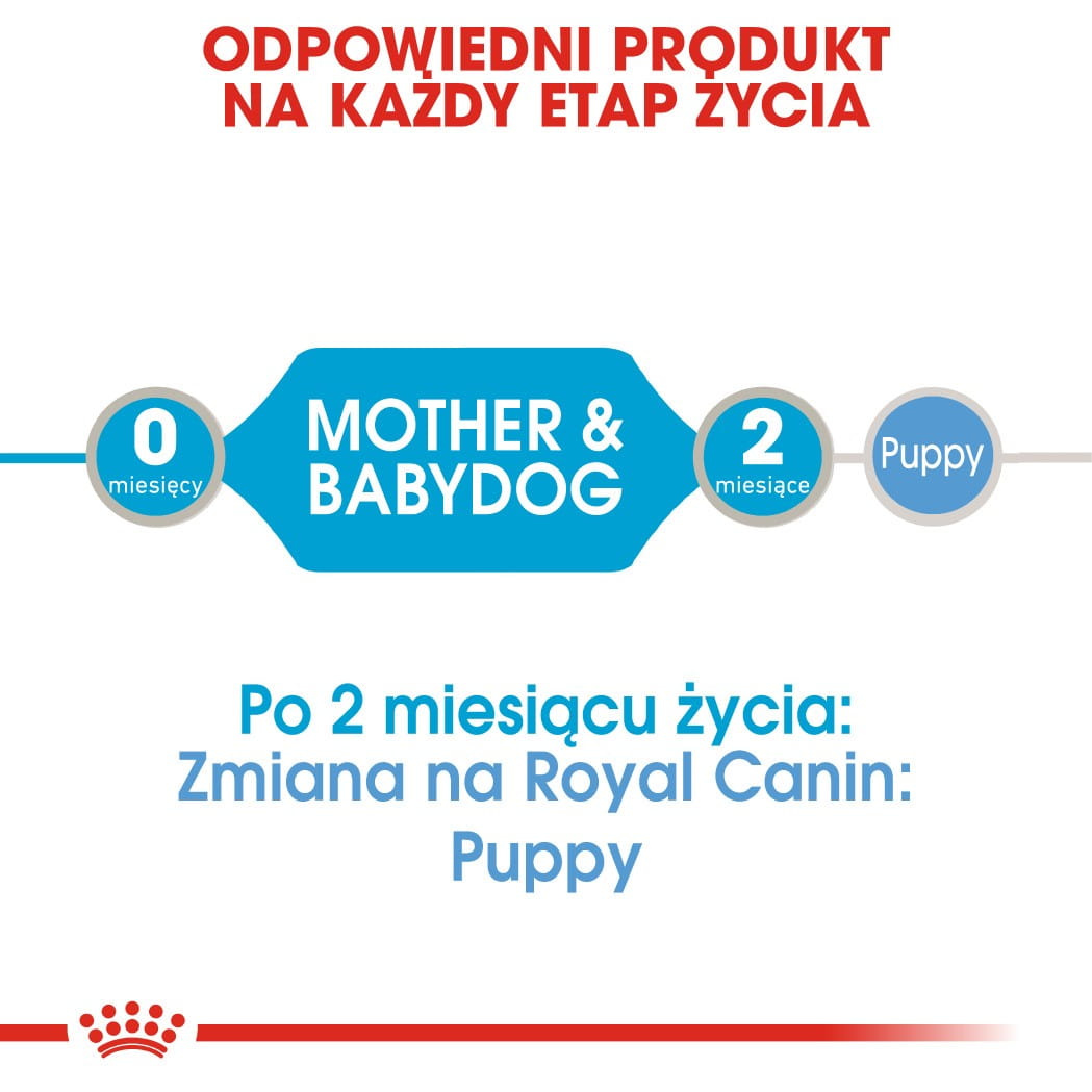 Karma ROYAL CANIN® Starter Mother & Babydog pokrywa potrzeby suk w ciąży i okresie laktacji, ras małych (do 10 kg) oraz szczeniąt ras małych, w okresie odsadzenia, do 2 miesiąca życia.