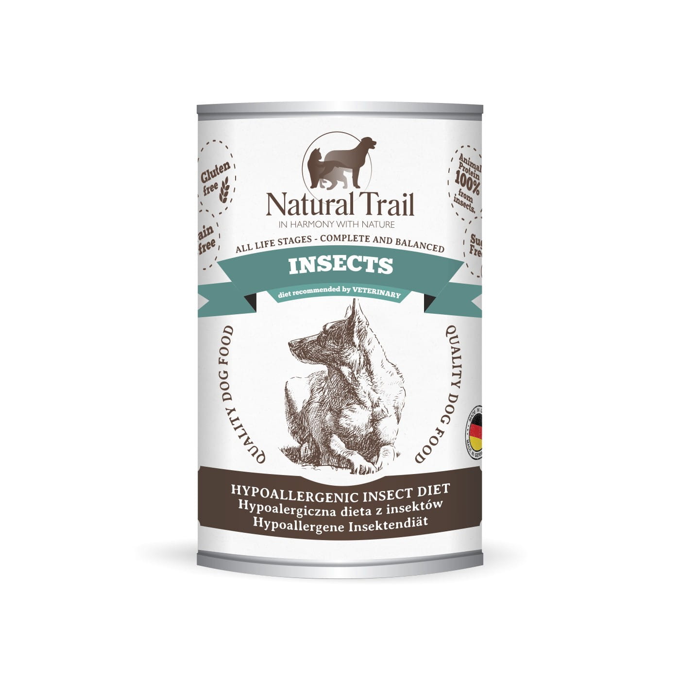 Natural Trail Insect dla psów to wyjątkowa, mokra karma stworzona z myślą o zdrowym i zrównoważonym żywieniu. Jej formuła, oparta na lekkostrawnym i hipoalergicznym białku owadów, to idealne rozwiązanie dla psów z wrażliwym układem trawiennym lub skłonnościami do alergii pokarmowych.