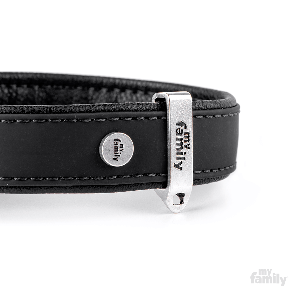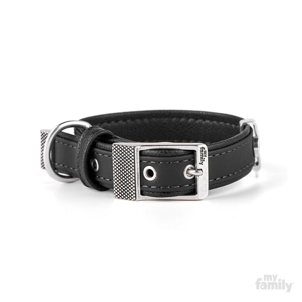 MyFamily Obroża BILBAO - Ekoskóra - Czarna - rozmiar M+ długość 45 cm