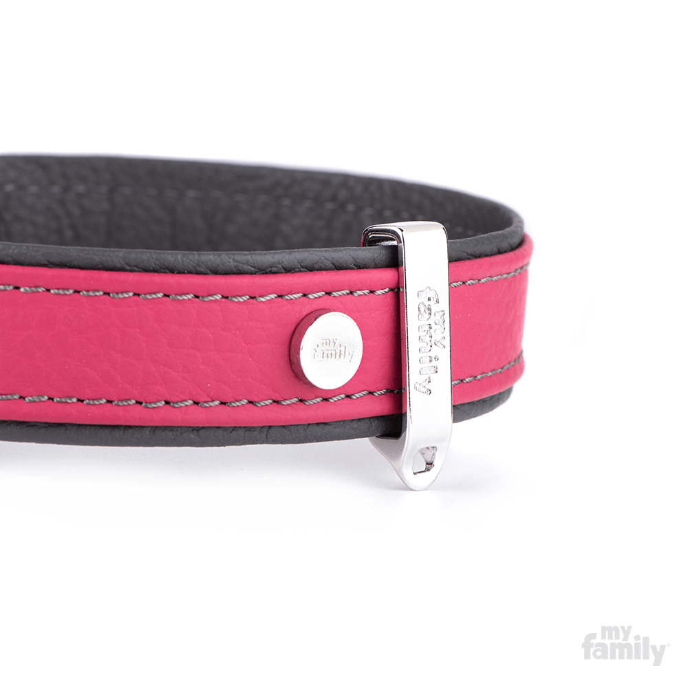 MyFamily Obroża FIRENZE - Skóra - Fuksja - rozmiar M+ długość 40 cm