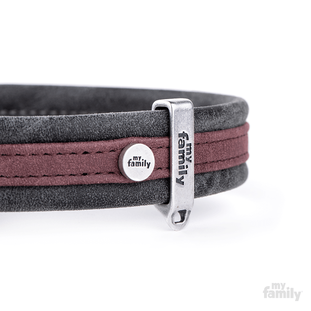 MyFamily LONDON Obroża EkoSkóra Bordowa L 1030