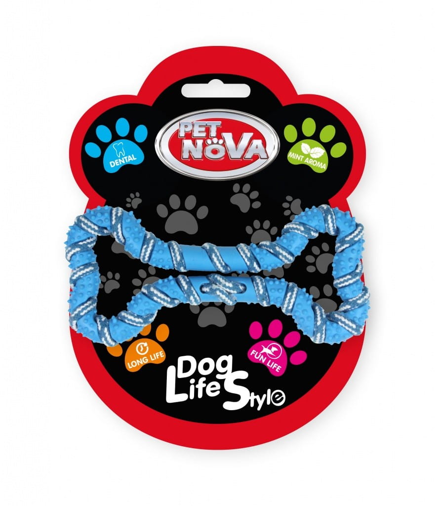 PET NOVA zabawka dla psa KOŚĆ ze sznurem 20cm niebieska