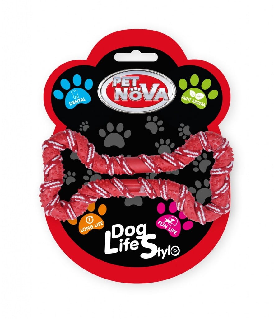 PET NOVA zabawka dla psa KOŚĆ ze sznurem 20cm czerwona