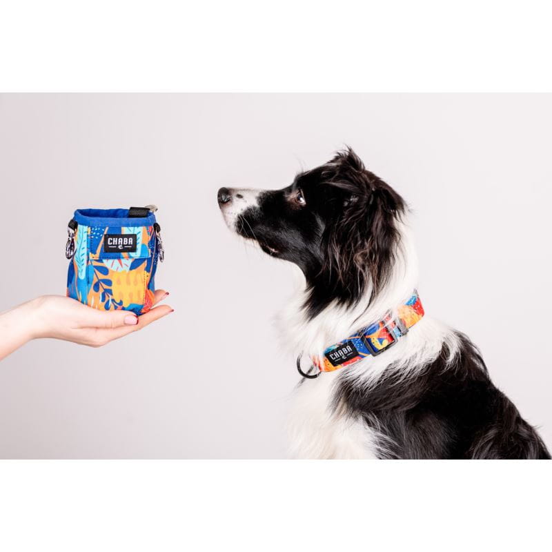 - Kieszeń na przysmaki znajduje się na górze saszetki, co pozwala na szybkie nagrodzenie psa podczas spaceru czy treningu.