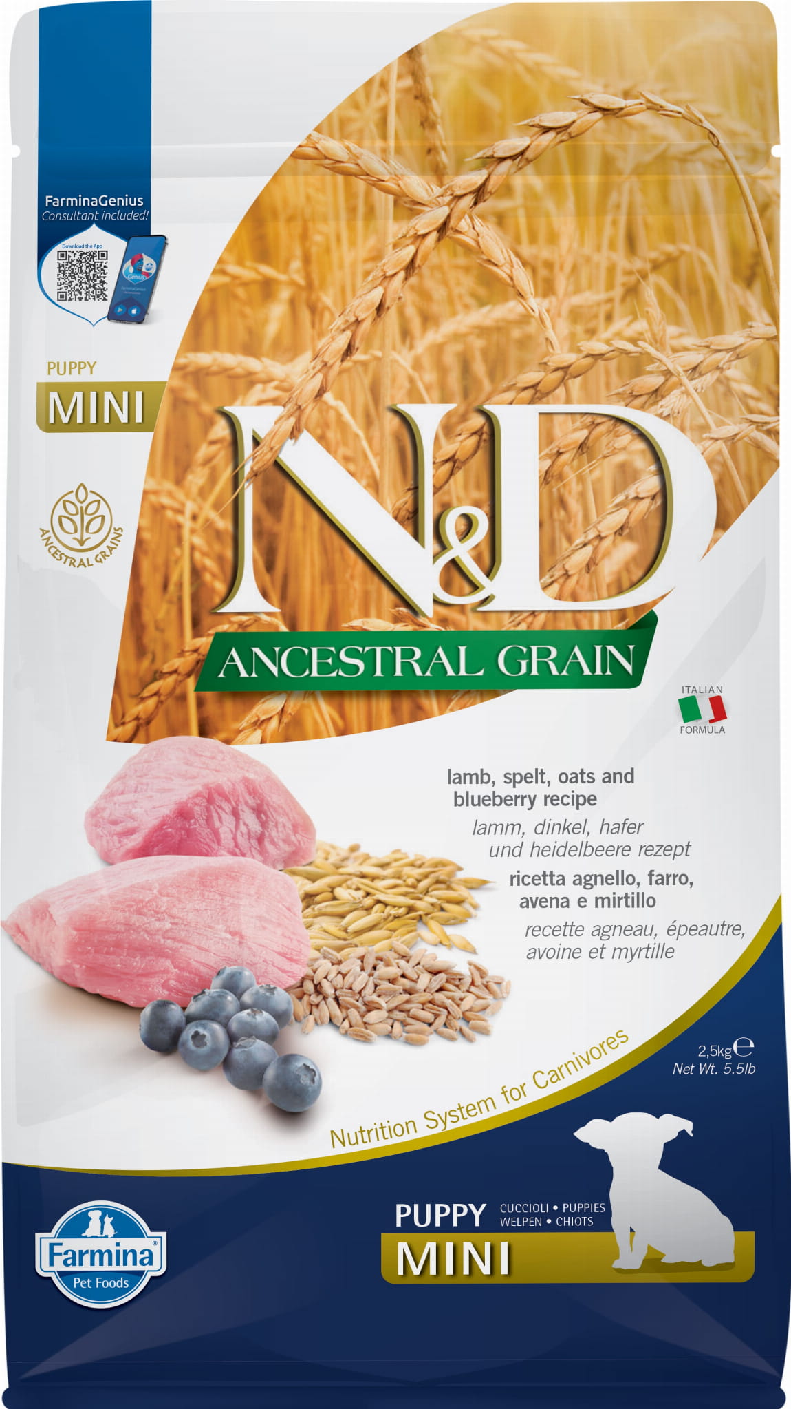 Farmina N&D Dog ANCESTRAL Lamb Spelt Oats and Blueberry Puppy MINI 2,5kg