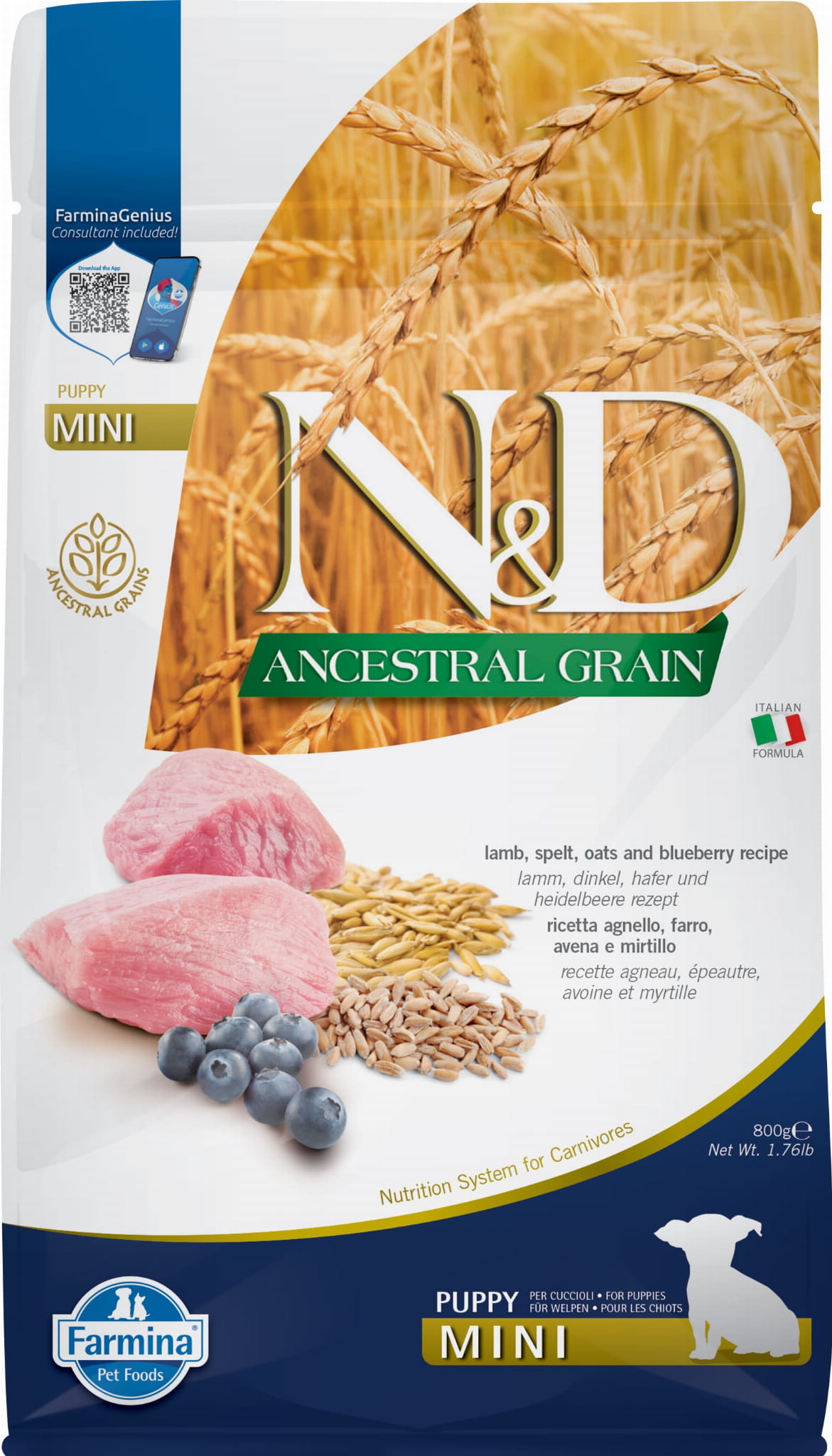 Farmina N&D Dog ANCESTRAL Lamb Spelt Oats and Blueberry Puppy MINI 800g