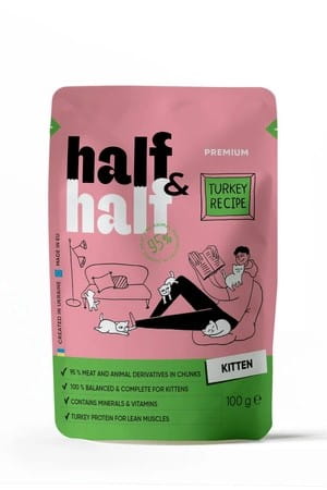 Pełnoporcjowa mokra karma HALF&HALF dla kociąt z delikatnym indykiem — idealny wybór dla harmonijnego rozwoju Twojego pupila. Zapewnia wszystkie niezbędne witaminy i minerały, wspierając zdrową skórę, lśniącą sierść oraz energię na cały dzień.