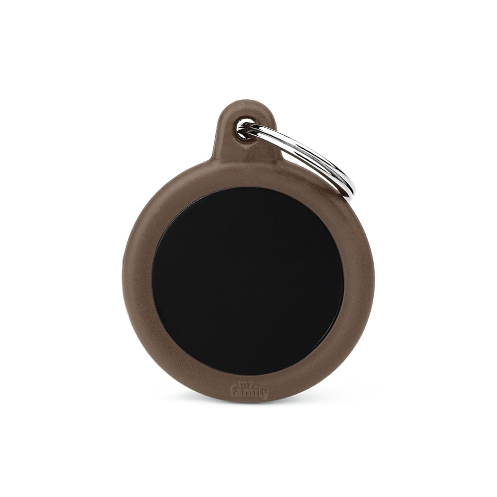 MyFamily Hushtag adresówka identyfikator Czarne koło z brązową gumą