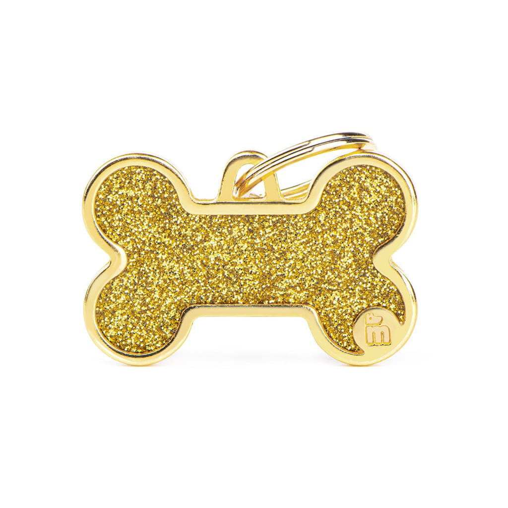 MyFamily Shine Gold adresówka identyfikator Duża błyszcząca pozłacana kość