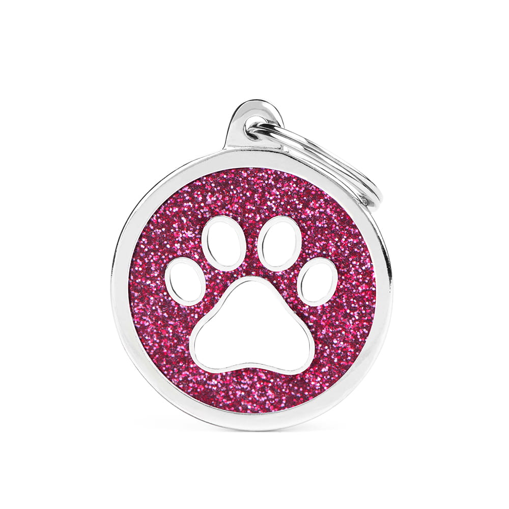 MyFamily Shine adresówka identyfikator Błyszczące różowe kółko z białą łapką