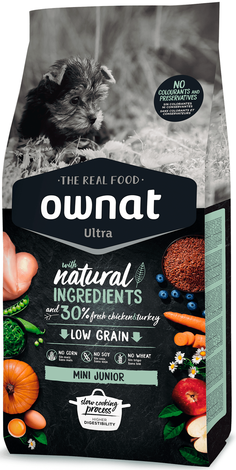 Szczenięta małych ras mają bardzo szybki i intensywny proces rozwoju. Karma Ownat Ultra Dog Mini Junior została opracowana aby zaspokoić potrzeby żywieniowe szczeniąt do wieku dorosłego. Jest również wskazana dla matek w ciąży i oferuje doskonałe wyniki jako produkt do odstawiania szczeniąt.