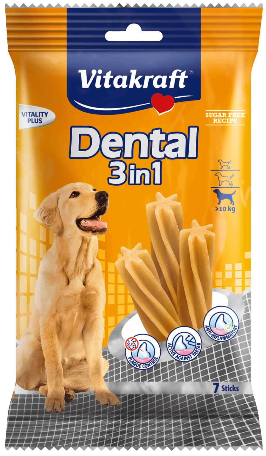 - Specjalny kształt gwiazdy sześcioramiennej oraz elastyczna konsystencja kości do gryzienia Dental 3in1zapewniają dokładne czyszczenie zębów i wspierają usuwanie osadu i kamienia nazębnego
