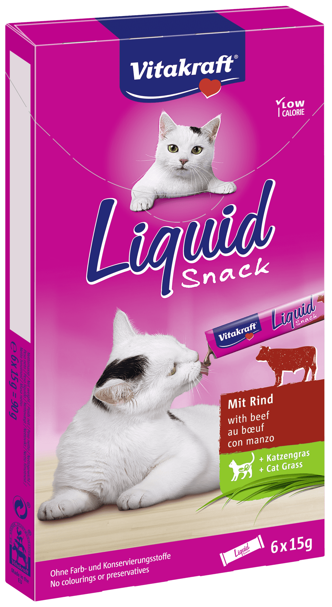 VITAKRAFT Liquid Snack z wołowiną i kocią trawą 6x15g