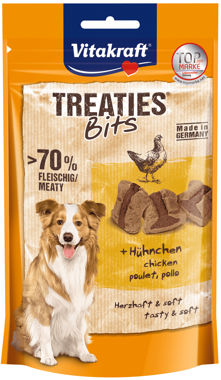 Vitakraft Treaties Bits z kurczakiem to karma uzupełniająca dla psów w formie pieczonych mięsnych pasztecików, które zostały poddane specjalnemu procesowi opiekania. Nie zawiera cukru i sztucznych dodatków smakowych.
