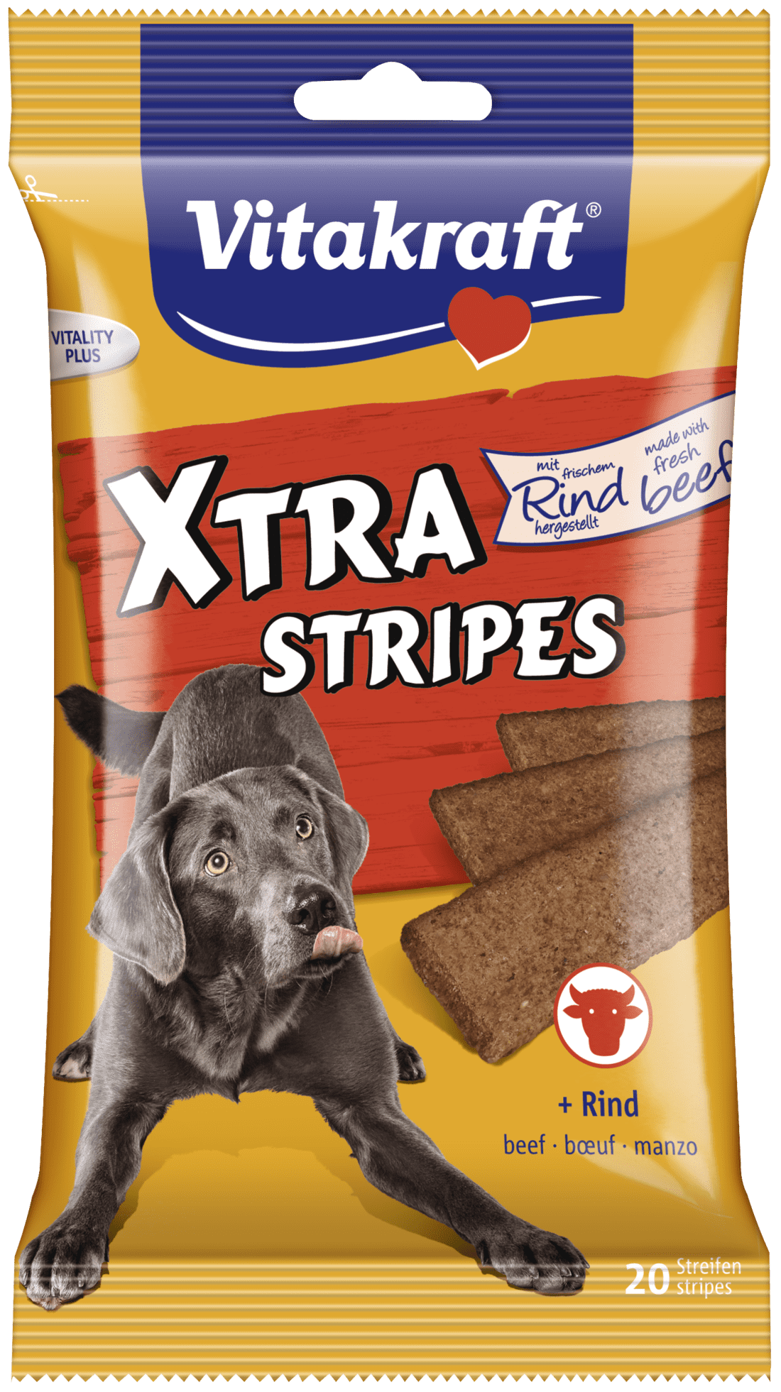Vitakraft Xtra Stripes z wołowiny to karma uzupełniająca dla psów w formie mięsnych pasków do żucia. Nie zawiera cukru i sztucznych dodatków smakowych. Idealny dodatek podczas spacerów, czy treningów. Twój pies go pokocha.