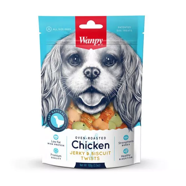 WANPY dla psa Chicken Jerky & Biscuit Twist Ciasteczka owinięte kurczakiem 100g