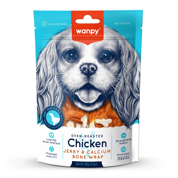 WANPY dla psa Chicken Jerky & Calcium Bone Wrap Udka kurczaka na wapniowej kostce 100g