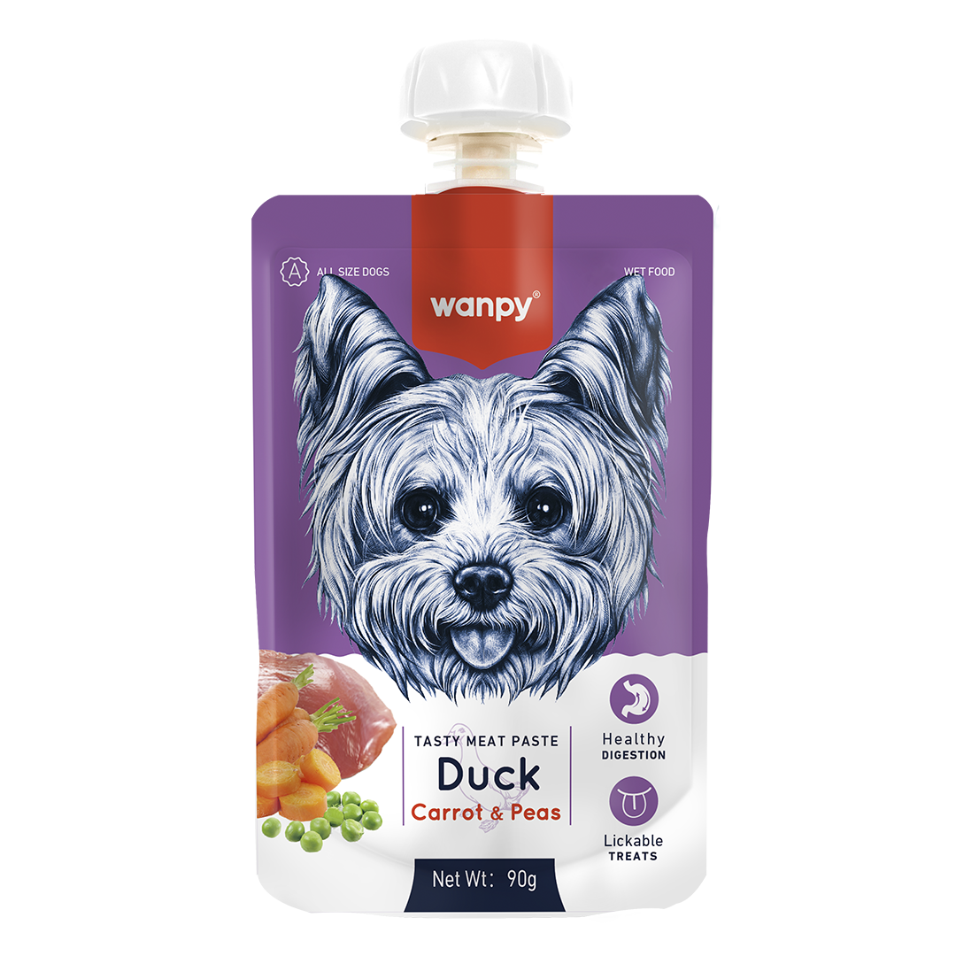 WANPY dla psa Pasta z kaczką, marchewką i groszkiem 90g
