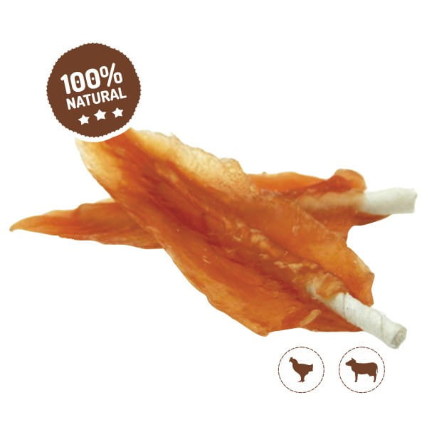 Przysmak wyprodukowany jest z 45% mięsa z kurczaka, o naturalnym zapachu. Mają różną długość i grubość.