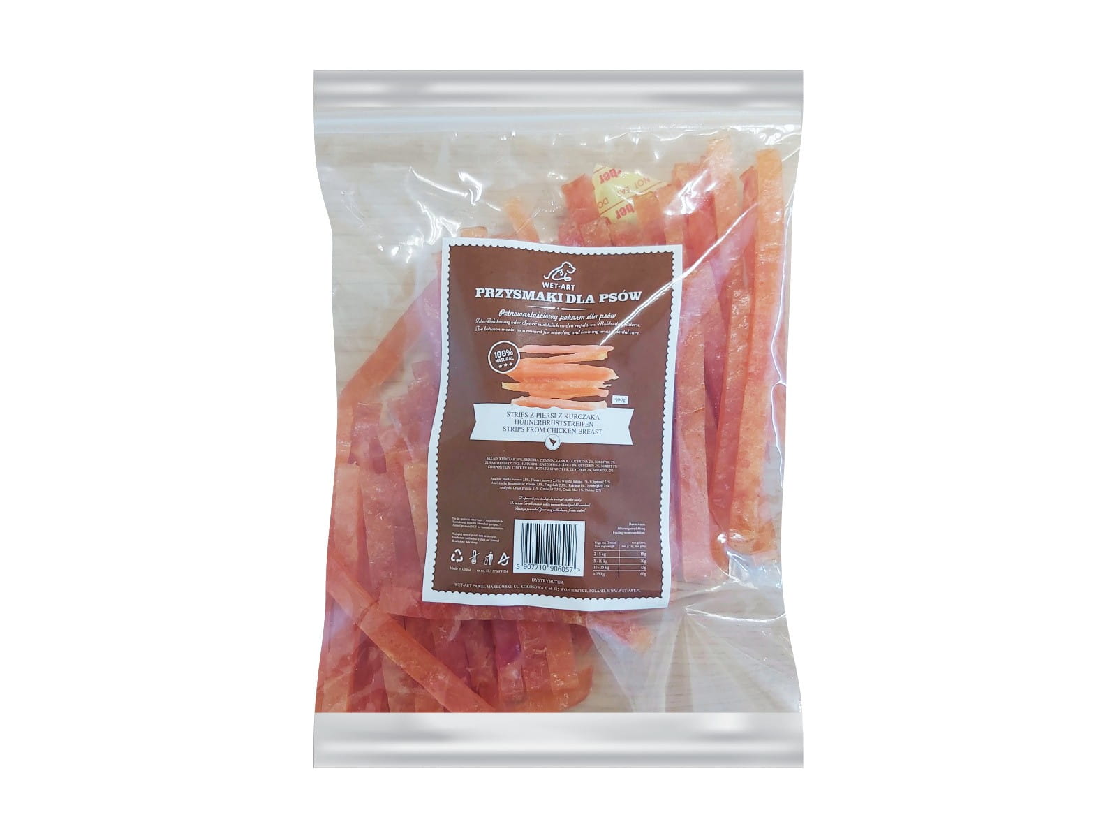 Przysmak wyprodukowany jest z mięsa, o naturalnym zapachu. Przysmaki mają różną długość i grubość.