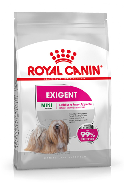 Karma ROYAL CANIN® Exigent Mini, odpowiednia dla psów o masie ciała do 10 kg, jest bogata w wartościowe składniki pokarmowe, których twój pies potrzebuje do zdrowego życia.