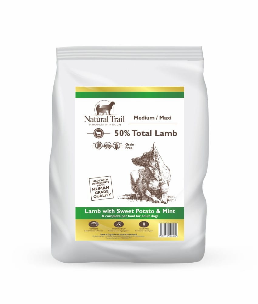 Natural Trail Lamb 50% Medium Breed, karma przygotowana wyłącznie z mięsa jagnięcego, dla dorosłych psów.