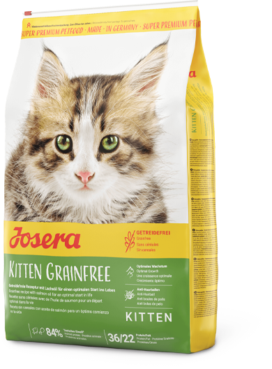 Już w pierwszych dniach pojawienia się kociąt na świecie, wraz z mamą potrzebują one troskliwej opieki. Kluczowe dla prawidłowego i zdrowego rozwoju są ich pierwsze miesiące życia. Dlatego tak ważne jest aby w tym okresie otrzymywały pełnowartościowy pokarm spełniający ich wysokie wymagania żywieniowe. Josera Kitten bez zbóż posiada lekkostrawną formułę z dużą zawartością drobiu oraz wysokim poziomem energii tak niezbędnym w tej kluczowej fazie rozwoju.