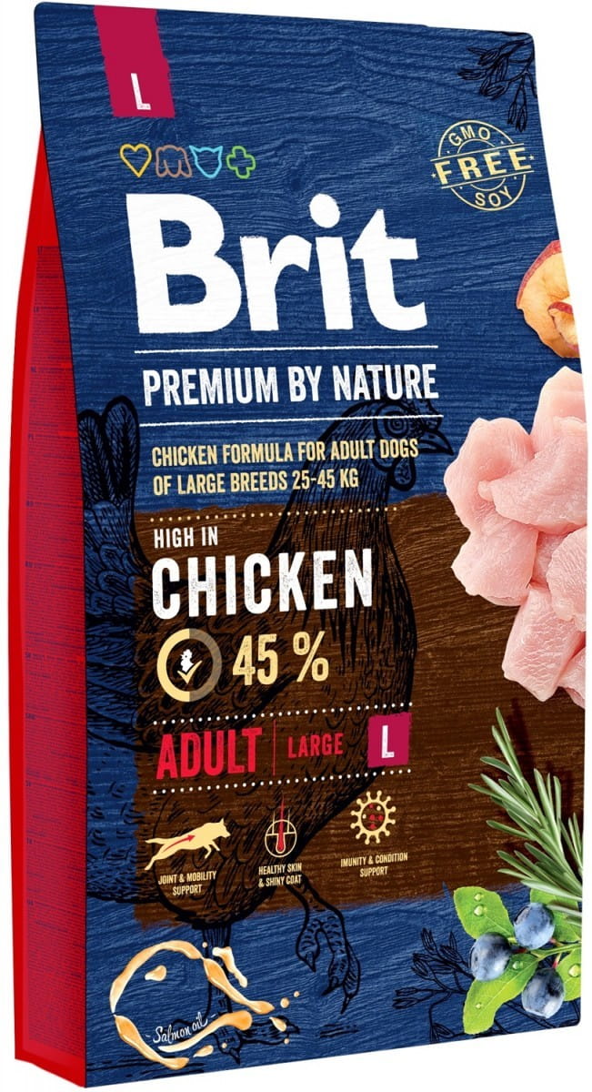 Zadbaj o zdrowie swojego psa z karmą Brit Premium by Nature L Adult – wysoce odżywczą i pełnowartościową formułą dla dużych psów.
